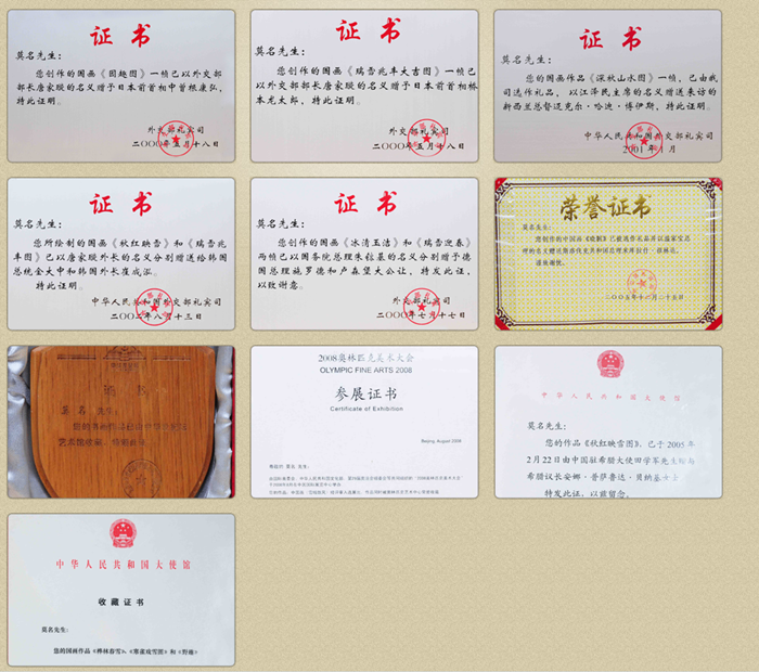 2002年夏,莫名应邀为新落成的中国驻新加坡大使馆作画。部分作品被中国驻新加坡大使馆,驻泰国大使,驻希腊大使馆收藏。被世纪坛人民大会堂中南海等单位收藏。也为国内外一些收藏家博物馆及美术单位收藏;
